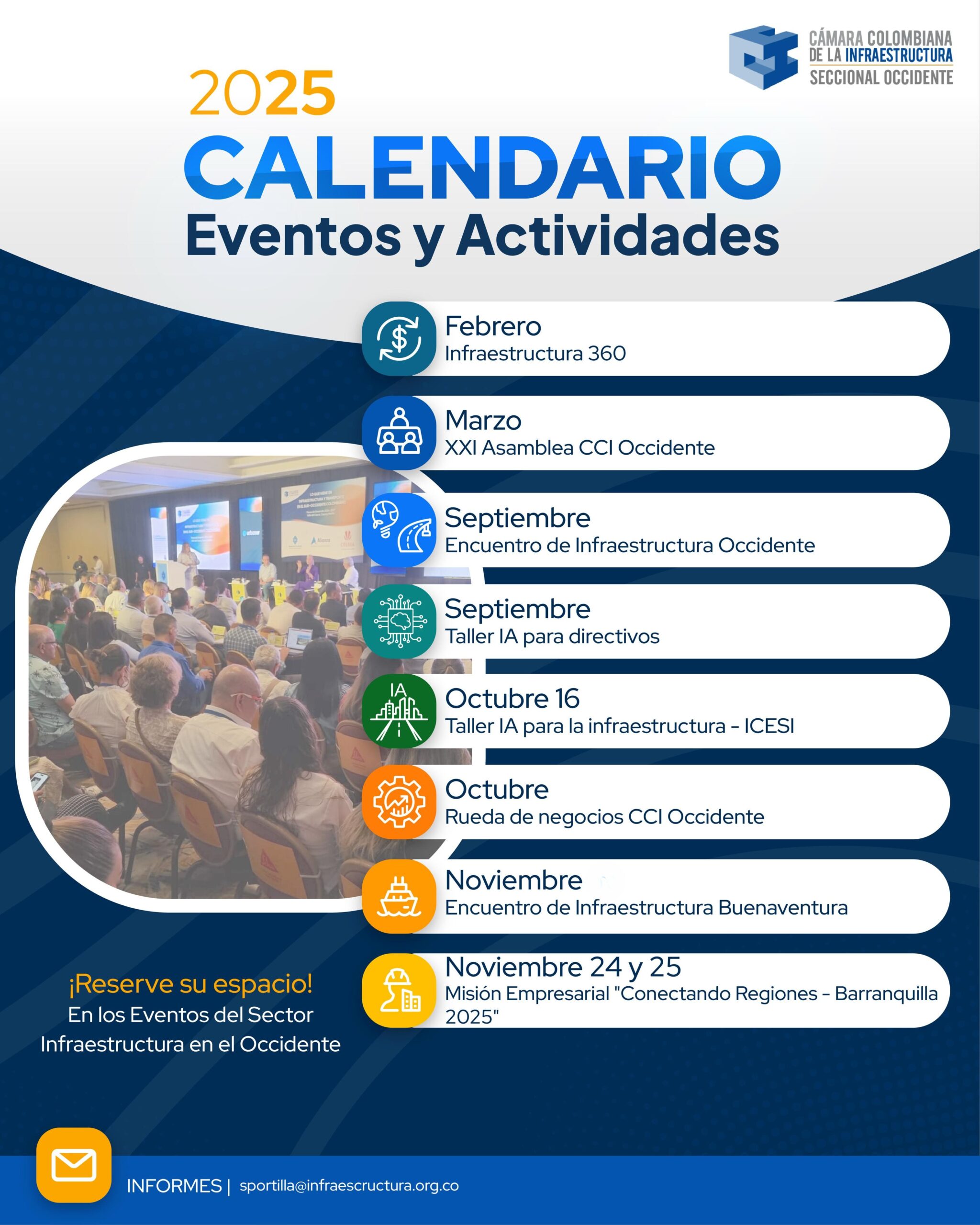 Estimados afiliados, hemos diseñado esta sección especialmente para ustedes, los invitamos a usar este nuevo espacio para publicar sus proyectos, convocatorias, ofertas laborales, clasificados y todo lo que consideren oportuno divulgar sobre sus empresas. Envíenos sus anuncios al correo comunicacionesoccidente@infraestructura.org.co